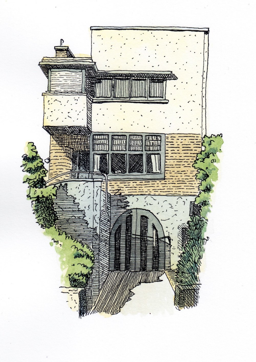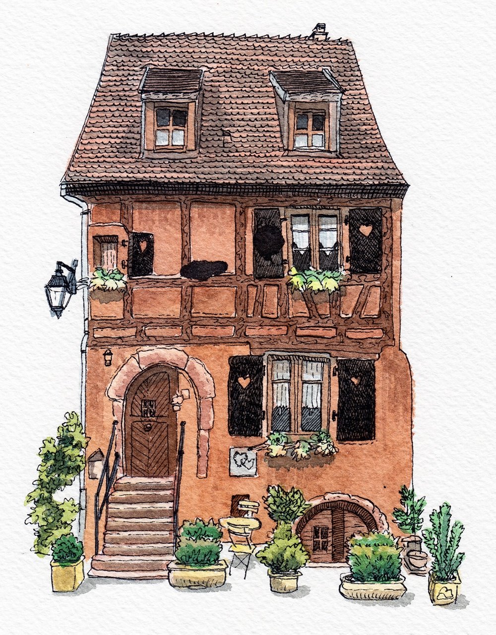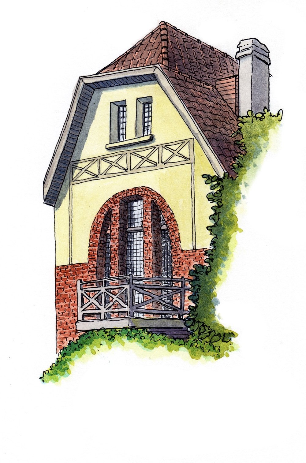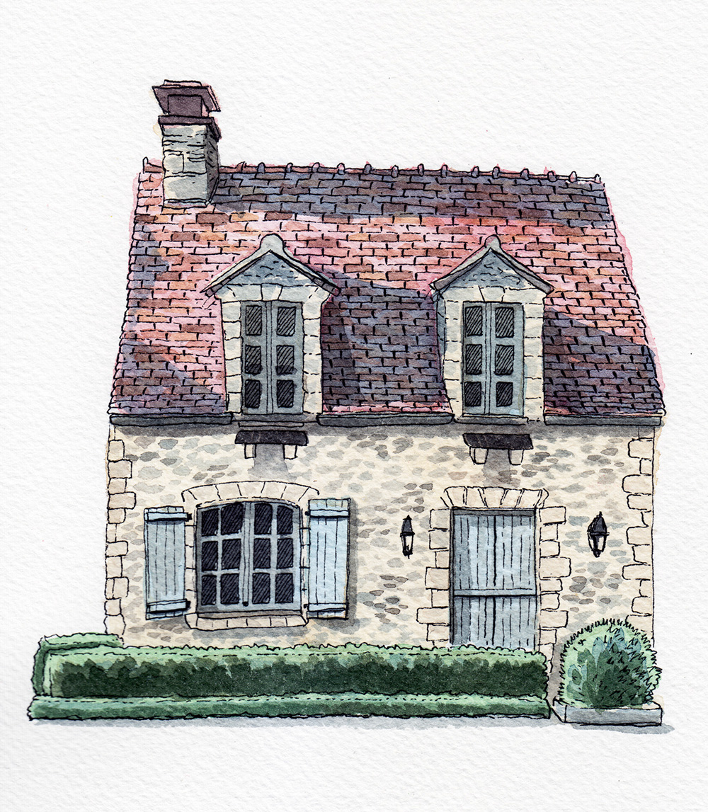I love drawing houses, they show so much personality. Walking around, I always take pictures of the houses nearby to draw them afterwards.